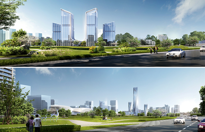 方案選取太平河片區(qū)地標(biāo)建筑為制高點(diǎn),結(jié)合友誼大街、復(fù)興大街和太行大街三個(gè)重要城市節(jié)點(diǎn),形成“一主三副、高低錯(cuò)落、變化有致”的城市天際線,重要節(jié)點(diǎn)處布置開敞空間和高層建筑組團(tuán),凸顯街道界面,豐富空間層次,視覺感受絕佳,彰顯城市輪廓的特征與標(biāo)識性,譜寫出一副城市風(fēng)光影畫。