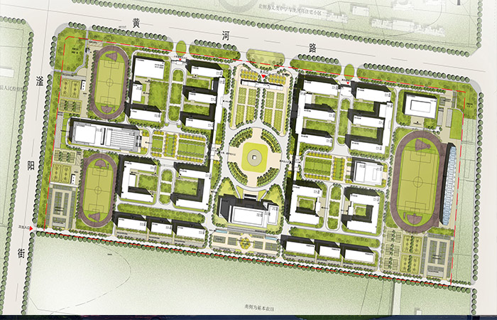 項(xiàng)目景觀延續(xù)規(guī)劃主軸,場(chǎng)地中央設(shè)置核心景觀區(qū),各教學(xué)及生活組團(tuán)分別設(shè)置組團(tuán)景觀,根據(jù)不同的空間序列,營造禮儀景觀軸,打造多個(gè)景觀節(jié)點(diǎn),形成深層次,多維度的景觀體系。