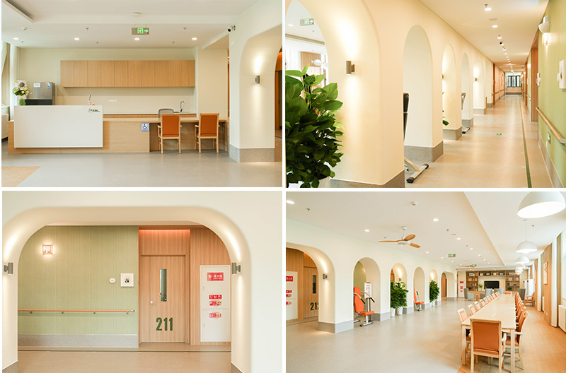 在適老化空間,我們結(jié)合老年人行為、心理等特性,認為在康氧環(huán)境中設置無障礙設施尤為重要,不僅僅體現(xiàn)于無障礙通道或電梯,還包括視線監(jiān)視與近便的服務動線設計。
