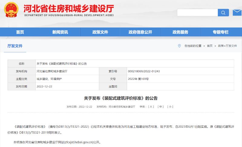2023年6月1日開始執(zhí)行新的《裝配式建筑評價標(biāo)準》DB13(J)T8321-2022