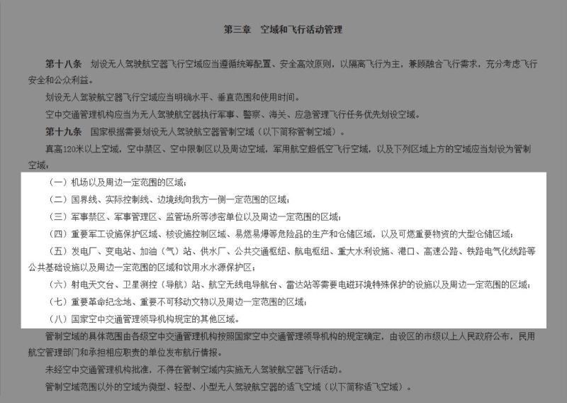 此次條例的頒布,有一個很大的變化就是飛行高度更加明確,要求更加嚴格,針對于微型、輕型、小型無人機劃分了適飛空域,真高120米以下適飛空域無需向空管部門申請,可隨時飛行。在管制空域內(nèi)飛行則需要向空管部門提出飛行申請,申請的單位或個人,應擬在飛行前一日十二點前向空中交通管理機構,提出飛行活動申請?罩薪煌ü芾頇C構應當在飛行前一日二十一點前作出批準,或者是不予批準的決定。